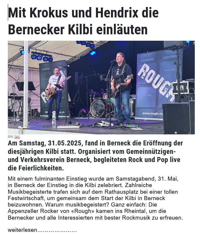 Dem Auftakt am Freitag war prächtiges Sommerwetter beschieden, sodass man sich musikalisch und kulinarisch aufs Beste verwöhnen lassen konnte. Den Reigen eröffnete traditionsgemäss «Rough», die bekannte Rockband aus Appenzell, die den Kronengartenplatz ebenso erbeben liess wie die nachfolgenden Bands wie «Pilots of the Daydreams», «Posh», «Sweet» und die «Crazy Diamond».Hier ein Video von Rough.................